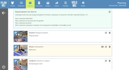 Als vakgroep hebben wij het plansysteem Plan Mij ontwikkelt. Dit helpt ons niet alleen de motorische leerlijnen te plannen, maar ook de reguleringsdoelen.